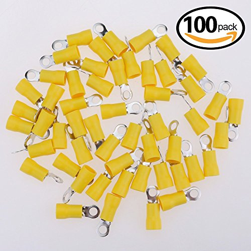 Glarks 100pcs 12-10 Gauge M4 Ring Electrical Insulated Quick Splice Crimp Terminals Connectors