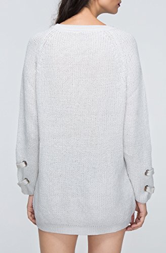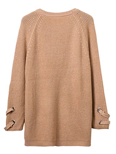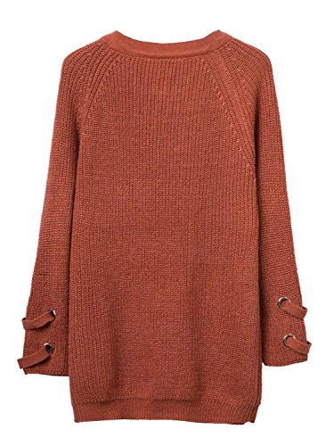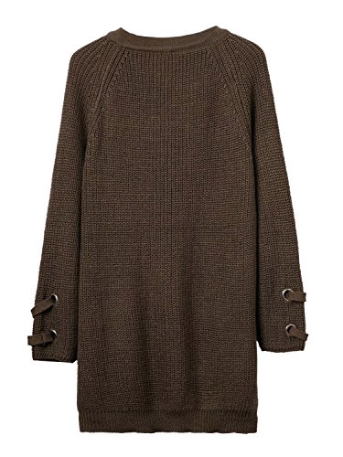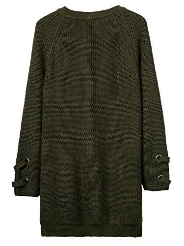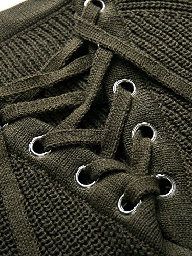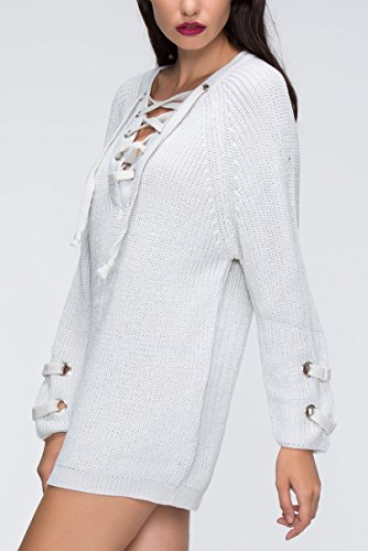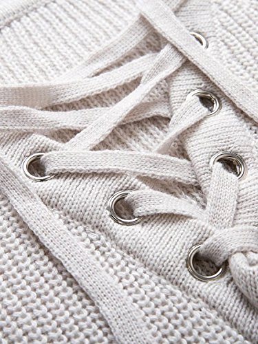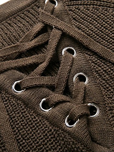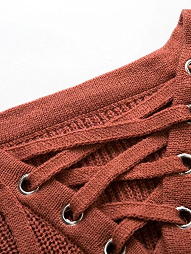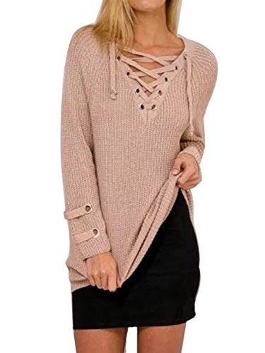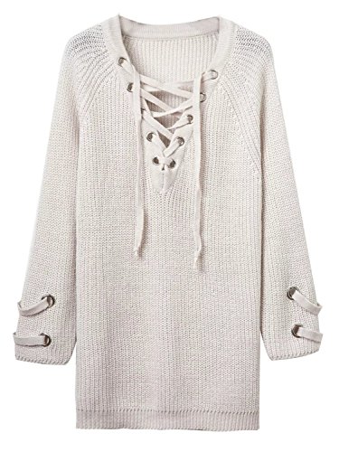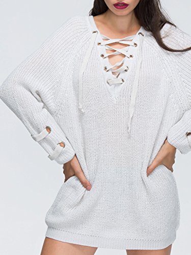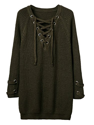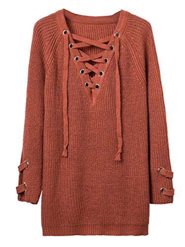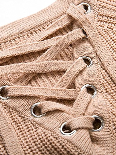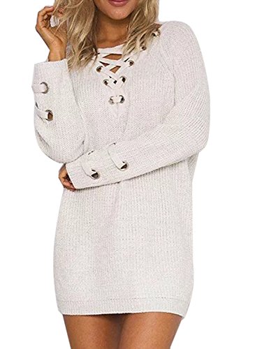 Joeoy Women's Lace Up Front V Neck Long Sleeve Knit Sweater Dress Top