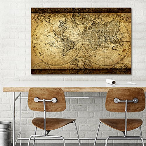 -. Title : WallDeco Vintage Map of World Painting on Canvas Wall ArtFramed and Stretched Wall Decor for Living Room