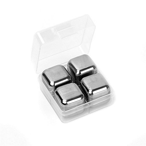 -. Title : Xinzistar 4 Pcs Reusable Stainless Steel Ice Cubes Chilling Rocks Whiskey Stones for Wine Beer Beverage FDA Approved with Plastic Storage Box