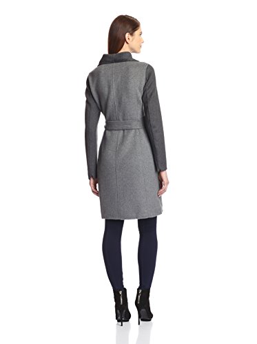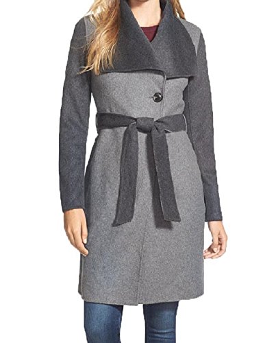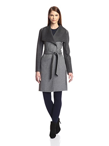 Belted wrap coat in soft wool blend featuring contrast sleeves and shawl collar