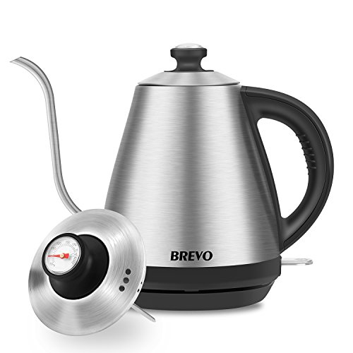 【FAST & SAFE BOILING】: Waiting is no fun, so the BREVO kettle heats water at 1000-watt, reaches to desired temperature quickly so you can more quickly make and enjoy your drink. The kettle turns off automatically when water has boiled. When it reaches to the desired temperature. It shuts off automatically with boil-dry protection when water boiled away.