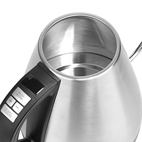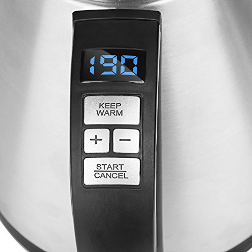 【VARIABLE TEMPERATURE CONTROL】: Water temperature is one of the most important variables while brewing coffee, an ideal coffee brewing temperature is between 198 °F to 205 °F. The digital control panel on the handle allows you to adjust temperature to ±1 °F precision between 120° to 212°F, and quickly navigate changing the temperature by 10 °F increasing or decreasing. The digital display lets you monitor temperature in real time.