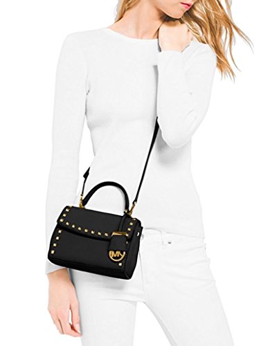 -. Brand : -. Color : Black -. Department : womens -. EAN : 0190049488294 -. Feature : Black Saffiano leather with Gold Studs / Top handle with 3 1/4" drop; adjustable cross body strap with 23" drop / Magnetic snap closure; lined / Interior slip pocket, interior zip pocket / 9" L x 3" W x 5.5" H -. Label : MICHAEL -. Manufacturer : MICHAEL -. MPN : 30T6GA6S2L-001 -. PartNumber : 30T6GA6S2L-001 -. ProductGroup : Shoes -. ProductTypeName : HANDBAG -. Publisher : MICHAEL -. Studio : MICHAEL -. Title : MICHAEL Extra Small Ava Stud Crossbody Black Gold -. UPC : 190049488294