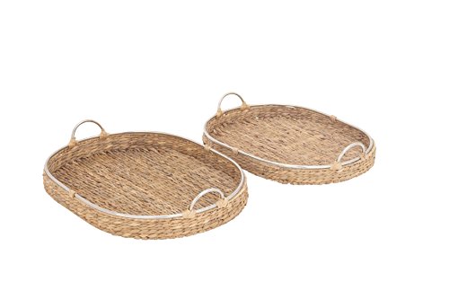 Deco 79 41194 Woven-Hyacinth Oval Trays with Metal Handles, Brown/Silver