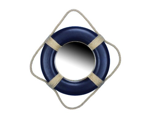 Hampton Nautical Decorative Blue Lifering Mirror, 15"