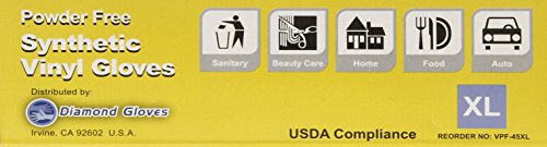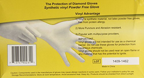 Diamond Gloves Advance Powder-Free Synthetic Vinyl Industrial Gloves, Yellow, 5 mil, X-Large, 100 Count