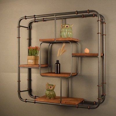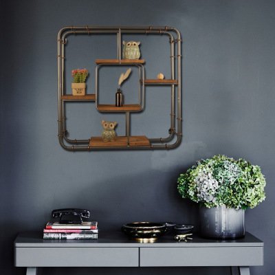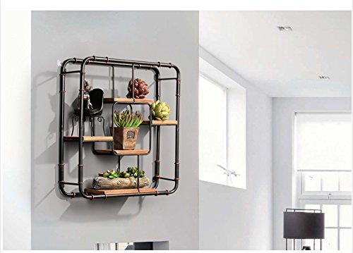 Square Industrial Retro Decorative Pipe Wooden Wall Mount Iron Pipe Shelf Hung Bracket Diy Storage Shelving Bookshelf …
