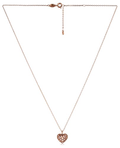 Rose gold-tone necklace featuring puffed heart pendant encrusted in soft pink rhinestones
