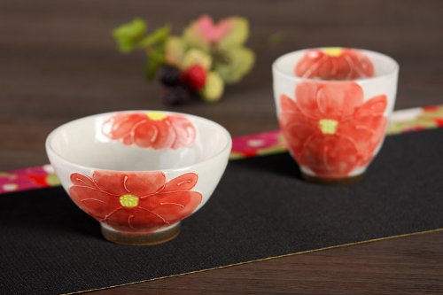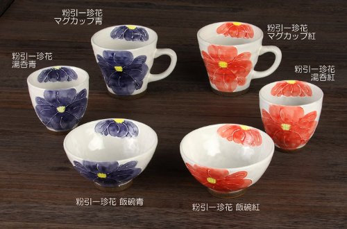 원본상품명: 万葉庵 粉引一珍花 飯碗(紅) 628 141