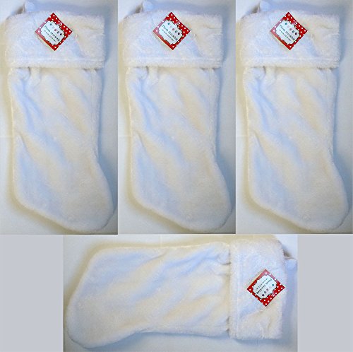 18" Red, Green, Maroon, or White Plush Stockings W/White Plush Cuff & Hanging Tag (4, White)