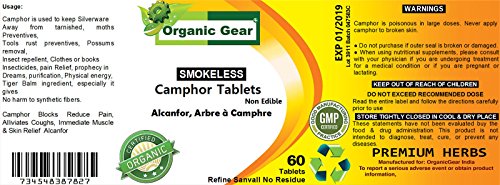 -. Title : Organic Gear Smokeless Camphor Blocks Premium High Quality Refine Sanvall No Residue Bed Bugs Non Edible [60 Tablets] SKU#3911-BX