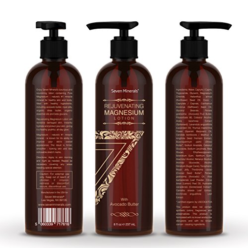 -. Feature : THE BEST NATURAL BODY LOTION YOU'VE SEEN: Never before on Amazon have you found a daily moisturizer quite like this. Cutting edge micro technology delivers serious results by combining pure ionic magnesium with soft avocado butter, organic essential oils and the world's top natural skincare ingredients and skinceuticals. Instantly feel hydrated and enjoy the silkiest skin ever. / WITH THE MIRACLE ANTI-AGING MINERAL: Our secret, lies in Pure Magnesium Chloride, mined from 250 million year old Permien Seabed. When applied to the skin, Magnesium is delivered deep below the basal layer, where skin regeneration takes place. It helps improve elasticity, circulation and collagen. But, it also acts as a carrier, taking other skin vitamins and nutrients with it, like delicious Organic Essential Oils. / SAFE, NON TOXIC HEALTHY BODY LOTION: What goes on our skin, goes deep into the cells of our body. Rejuvenating Magnesium Lotion contains NO endocrine/hormone disruptors, NO known cancer-causing ingredients, NO synthetic colors and NO nasty fragrances. Ingredients are natural and tested for impurities. / SILKY SKIN AND A YOUTHFUL GLOW: Your Magnesium Lotion is formulated with the world's latest technology in skincare. Magnesium combined with: creamy Avocado Butter, anti-aging Royal Jelly, silken organic Shea Butter, organic Cocoa Butter, calming Lavender oil, invigorating Lemon oil, beta glucans and other natural, non-toxic skin food ingredients. It's a complete Skin Spa! You won't be able to keep your hands off yourself! / 100% MONEY BACK GUARANTEE: We stand firmly behind the Spa quality of this daily moisturizing lotion. You'll fall deeply in love with your skin's smooth, silky feel and realize, you have made the best skincare choice on your search today. Order Now. Satisfaction guaranteed, or your money back!!