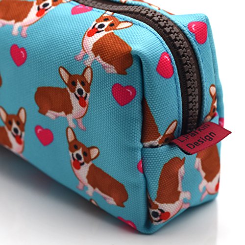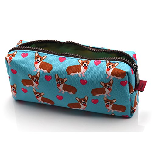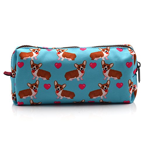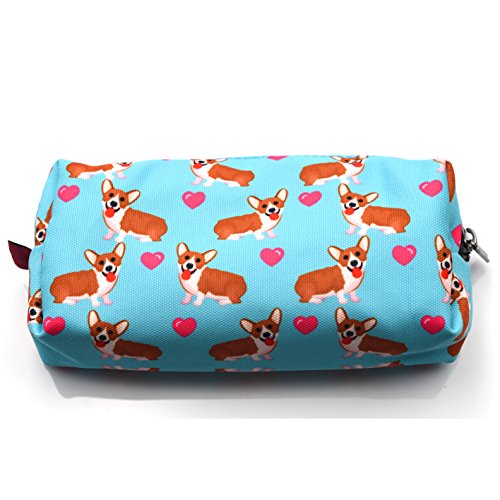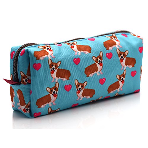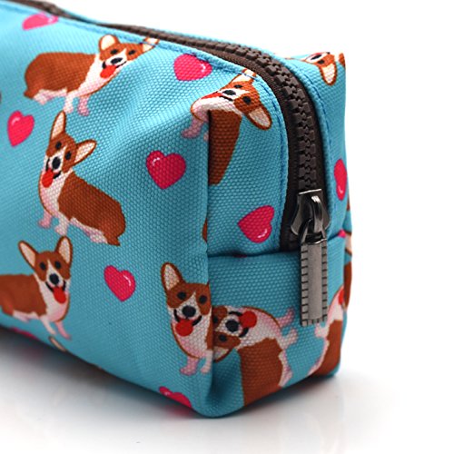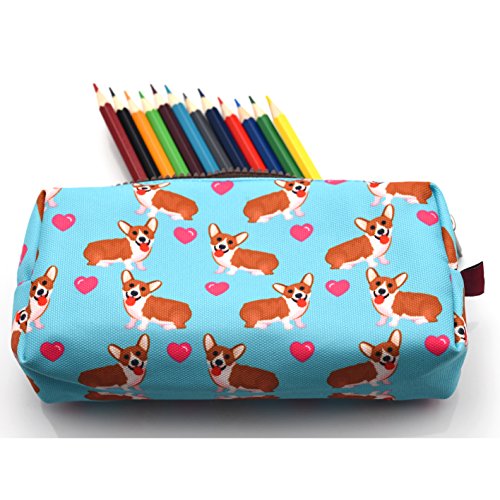 LParkin Corgi Dogs Students Super Large Capacity Canvas Pencil Case Pen Bag Pouch Stationary Case Makeup Cosmetic Bag (Blue)
