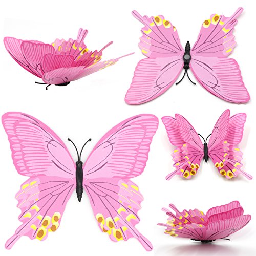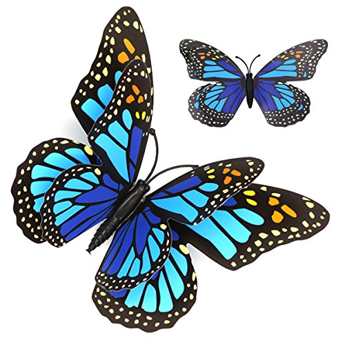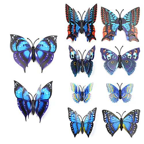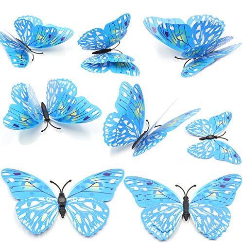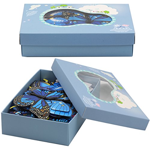 48 PCS Fridge Magnets - VIMOV Double-deck Wing Magnetic 3D Butterfly Wall Stickers (Blue and Pink)