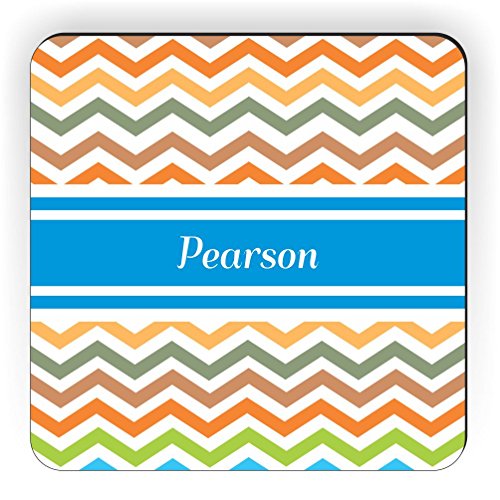 Rikki Knight "Pearson" Blue Chevron Name Design Square Fridge Magnet