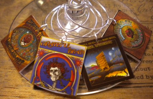 -. Binding : Kitchen -. Brand : FortySevenGems -. Color : Multicolor -. Feature : Also available in a set of 12 - Pick Which 6 You Want or Random Will Be Sent / Measures Approximately 1/2" / All Rings Included / Includes a Beautiful Gift Bag Optional Personalized Gift Card / Printed image on plastic with a matte sealant and are water resistant not water proof -. IsAutographed : 0 -. Label : FortySevenGems -. Manufacturer : FortySevenGems -. MPN : 6GratefulDead -. PartNumber : 6GratefulDead -. ProductGroup : Kitchen -. ProductTypeName : KITCHEN -. Publisher : FortySevenGems -. Studio : FortySevenGems -. Title : FortySevenGems Set of 6 Grateful Dead Album Cover Collection Wine Charms