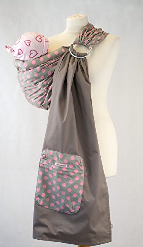 -. Binding : Baby Product -. Brand : Palm&Pond -. EAN : 5060317551089 -. Feature : Delivery from the UK in 7-10 working days / Suitable for babies from birth to 35lbs. / 180cm from the ring to each end giving a total length of 360cm. / Full instructions on how to use your Ring Sling in two positions, "Cradle" and Hip", will be sent with your sling. / Padding built in at both the top and bottom to provide added comfort for your baby. -. Label : Palm and Pond -. Manufacturer : Palm and Pond -. ProductGroup : Baby Product -. ProductTypeName : BABY_PRODUCT -. Publisher : Palm and Pond -. Studio : Palm and Pond -. Title : Palm and Pond Adjustable Ring Sling Baby Carrier - Grey With Pink Polka Dots
