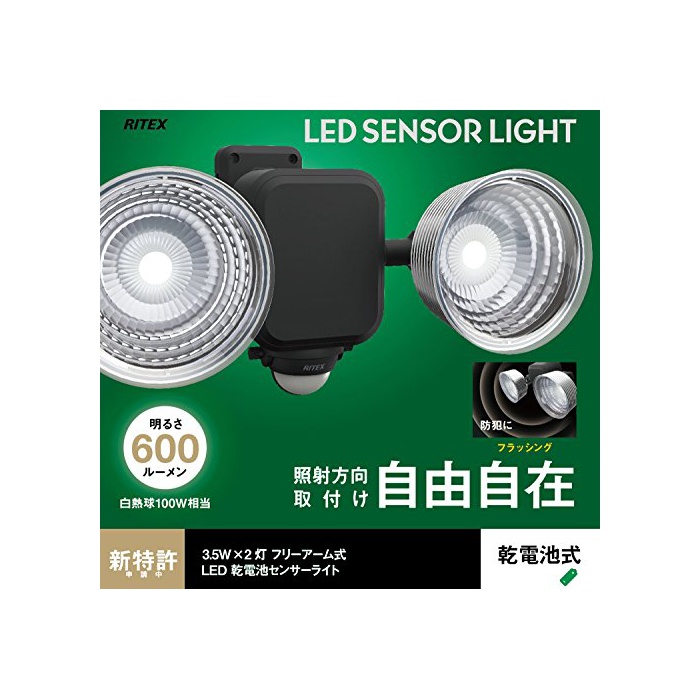 원본상품명: ムサシ RITEX フリアム式LEDセンサライト(3.5W×2) 「乾電池式」 防雨型 LED-265