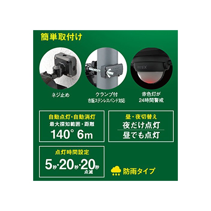 점등 시간 설정:약5 초약20 초약20초의 점멸 고, 점등 교환 기능:낮(주위가 밝아도 어두워도 점등)/밤(주위가 어두울 때의 봐 점등)