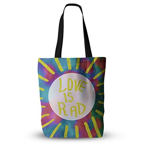 KESS InHouse Vasare Nar "Love Is Rad" Yellow Typography Everything Tote Bag, 18" x 18", Multicolor