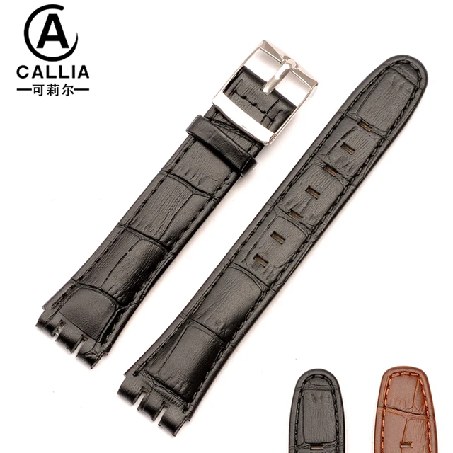 | [해외]17 미리메터 19 미리메터 블랙 브라운 높은 품질 정품 송아지 가죽 시계 줄 대한 swatch 스트랩 스테인레스 스틸 핀 버클 |