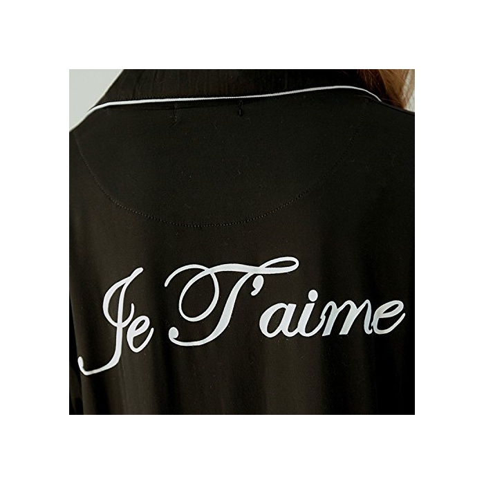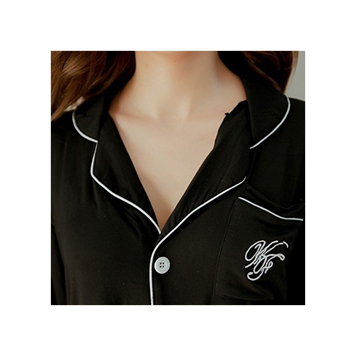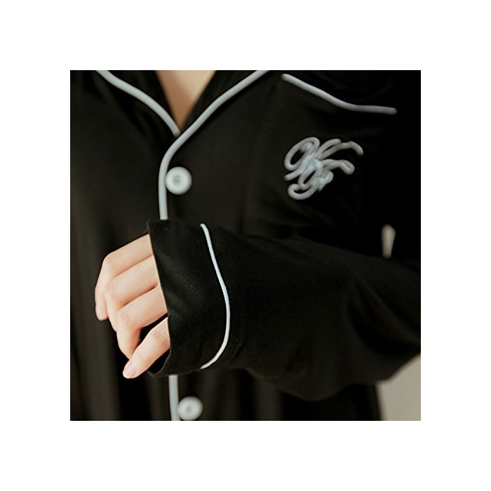 MIKA&MAYA 파자마 레이디스 긴 소매 상하 세트 웨어 앞 열림 심플 (블랙 M)