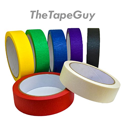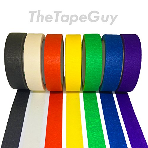 TheTapeGuy's Multi Colored Masking Tape for Arts & Crafts, Painting, Labeling, and more. [7-Color Variety Pack: Red, Yellow, Green, Blue, Purple, Black, White]