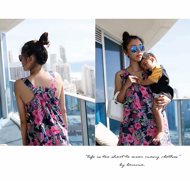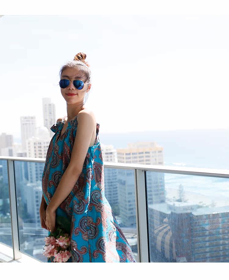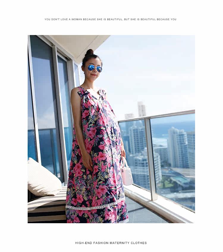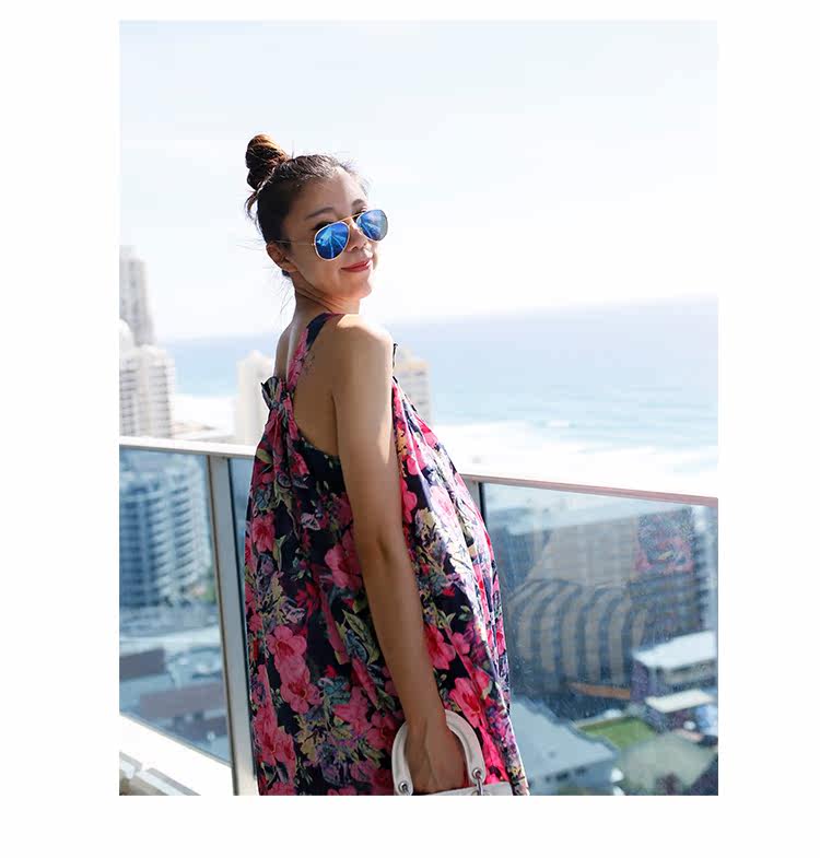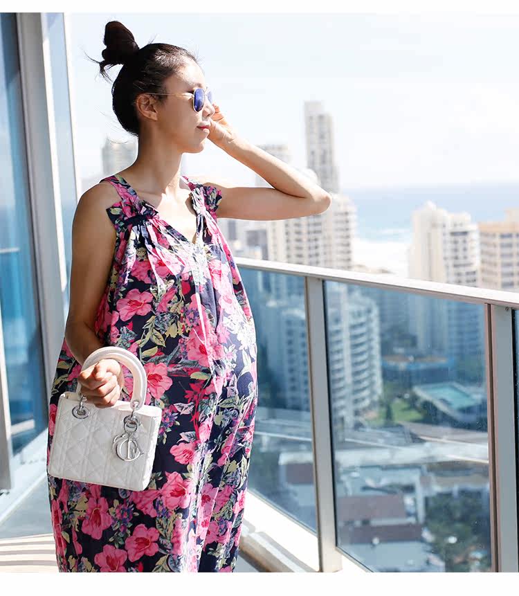 夏季新款孕妇长裙大码宽松女装民族风孕妇装连衣裙V领吊带裙