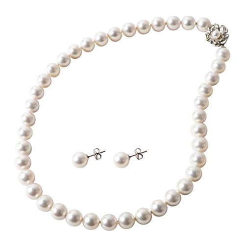 -. Title : まつよ 花珠貝パール パールネックレス ピアスセット ホワイト 白パール 8mm 45cm 日本製