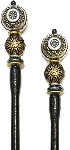 Studio : Shaune Bazner Publisher : Shaune Bazner Binding : Misc. Product Description Shaune Bazner's Mei Fa (pronounced "May Fah") Hairstyx hold all lengths and textures of hair without the use of rubber bands or pins. If you can make a ponytail, you can enjoy our beaded hair sticks. Just one pair will keep your hair design in place, comfortably and securely without headaches or damage to your hair. The wooden shaft is 5 1/2" long and made of turned hardwood from sustainable forests in Maine. It is topped with beads from all over the globe. All of our hair sticks are handmade in Washington, DC since 1978. Each pair of beaded Mei Fa Hairstyx comes with a travel case and directions to simple hair designs. 0