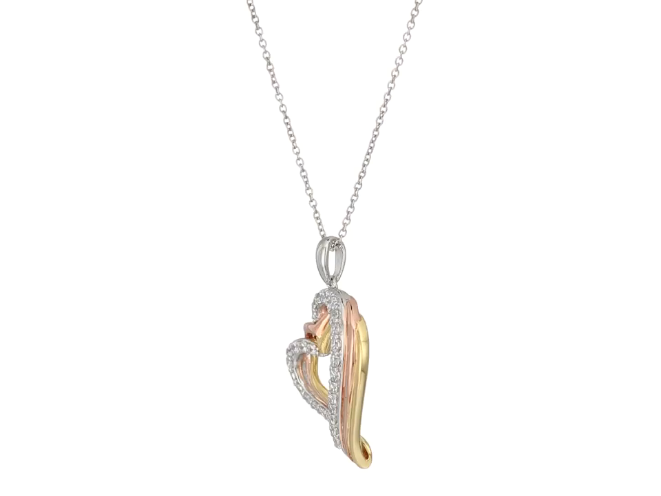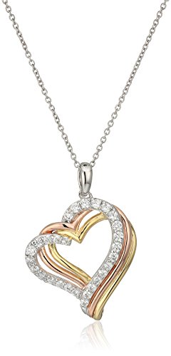 Sterling Silver with Yellow and Pink Gold Plating Cubic Zirconia Triple Hearts Pendant Necklace, 18''
