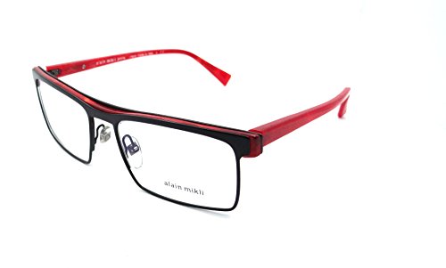 Product Description New Authentic Alain Mikli Rx Eyeglasses Frames A02021 E185 55x18 Black / Red Pearl Italy HAND MADE IN ITALY Lens size: 55mm Bridge Size: 18mm Temple Size: 145mm Color: Black / Gunmetal / Red Pearl The lenses on the frames are dummy clear lenses, to get a prescription you will need to take the frames to an optical shop. Comes with Alain Mikli Case 0