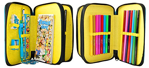 - Keep all of your child's school and stationery essentials safe in this fun, brightly Coloured Family Guy themed pencil case. The Pencil case has two large zipped Compartment and has Family Guy images on both sides.