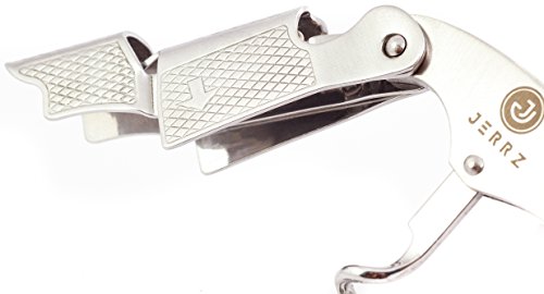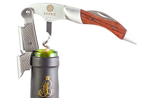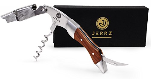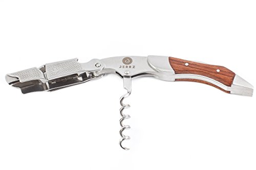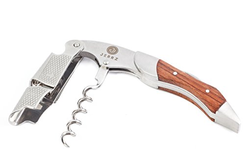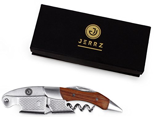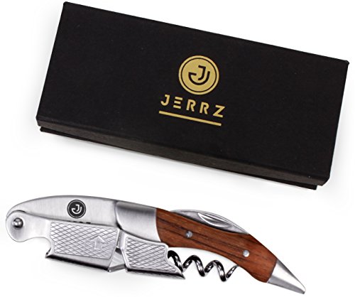 Studio : JERRZ Publisher : JERRZ Product Description Jerrz wine bottle opener manual tool is obviously a champion among corkscrews wine bottle opener. Its functionality enables you to use it as a travel wine opener, beach wine opener, home wine opener and counter wine opener with the same comfort. When other wine openers give up, this wood wine bottle opener remains elegant and attractive. Unlike other wine keys made of thin steel plates, this wine opener stainless steel components have been developed to serve for decades. A blend of load resistant steel and rosewood inlays makes this heavy duty corkscrew a desirable contribution to anyone's collection. This foldable wine opener enables you to open wine effortlessly making a moment more of a ceremony. Jerrz wine opener corkscrew may be easily used as a sommelier professional corkscrew, pocket corkscrew, pouch corkscrew, bartender corkscrew as well as home wine opener corkscrew for the lovers of this fabulous drink. Small sized and well balanced, this wine corkscrew is pretty unnoticeable wherever you put it into. And yes, this wine opener key with its aesthetic appearance and expensive looking box it comes in is a good gift to give whatever the occasion is. Cute wine opener is a must have wine opener tool. To insure the highest functionality the construction of the wine key was simplified and reinforced making it practically unbreakable wine opener. Light weighted at the same time it is a #1 wine key for women and one of the best wine keys for bartenders. The Jerrz corkscrew opener is a multifunctional tool blending the functions of wine cork opener, beer bottle opener and foil cutter. The latest is long enough to be used outdoors instead of a pocket knife if forgotten. It cuts cheese vegetables as easy as it goes through the toughest wine bottle necks. Small wine key is an indispensible tool during trips, travels, hiking tours or whatever vocation. The size of our portable wine opener makes it ideal to fit almost any pocket or bag section. Jerrz: designed to enjoy! 0