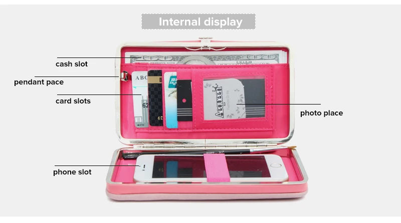 Interior:Photo Holder,Cell Phone Pocket,Interior Zipper Pocket,Passcard Pocket,Interior Slot Pocket,Coin Pocket,Card Holder,Note Compartment