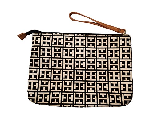 -. Brand : Tommy Hilfiger -. Color : multicoloured -. Department : womens -. Feature : Authentic Tommy Hilfiger Signature Logo Fabric / Adjustable Wristlet strap / Zip Top Closure / Interior: One zip pocket & 2 multifunction slip pockets / Measures : 10.5" (L) x 8" (H) x 1" (D) -. ProductGroup : Shoes -. ProductTypeName : HANDBAG -. Title : Tommy Hilfiger Large Clutch Handbag