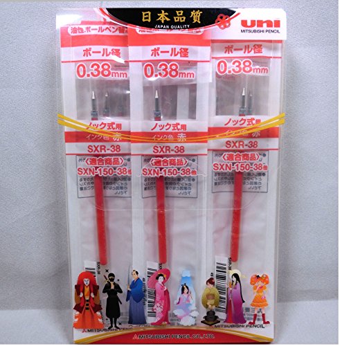 -. Feature : Uni-ball Jetstream Fine Point Roller Ball Pens SXR-38 Refills 0.38mm -RED INK- 10 SETS(Uni+Japan original package)