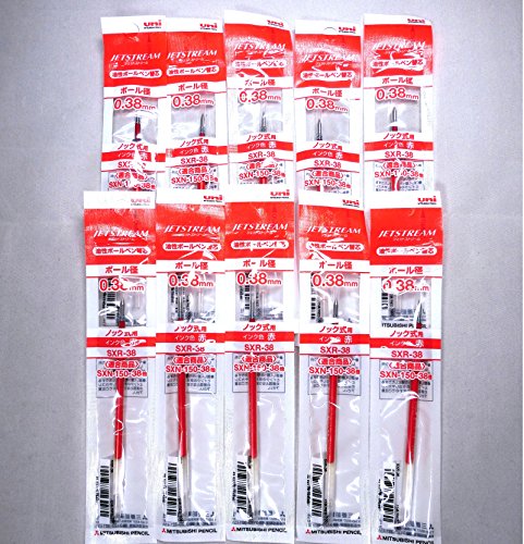 -. Title : Uni-ball Jetstream Fine Point Roller Ball Pens SXR-38 Refills 0.38mm -RED INK- 10 SETS (Uni + Jeindeer Japan original package)