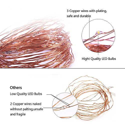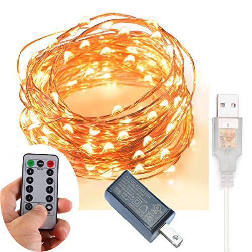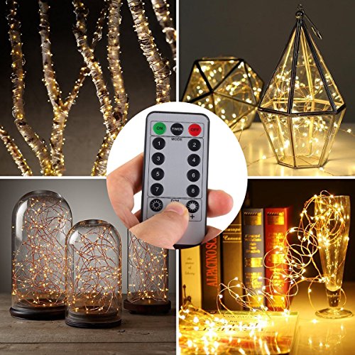 200 LED Indoor/Outdoor Copper Wire Lights w/ Remote & UL listed USB Charger Waterproof Ambiance Lighting for Gardens, Patios, Parties (Timer, 8 Modes, Dimmable, USB interface, Warm White)
