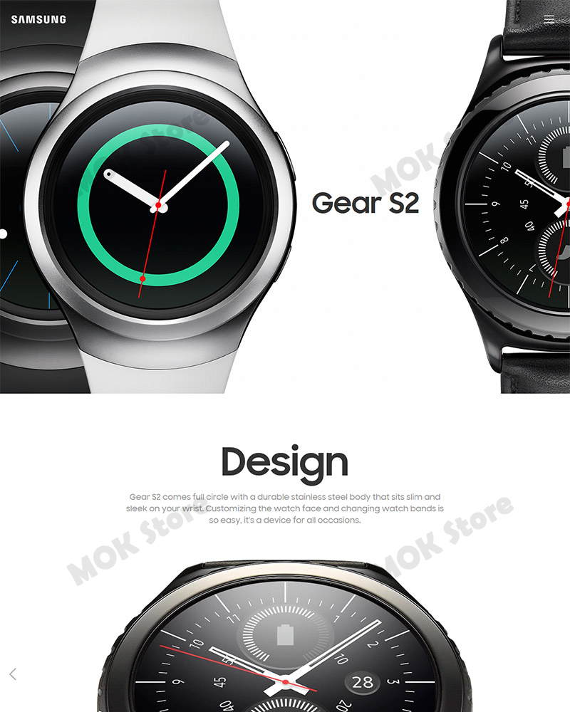 - Gear S2 comes full circle with a durable stainless steel body that sits slim and sleek on your wrist. Customizing the watch face and changing watch bands is so easy, it's a device for all occasions.