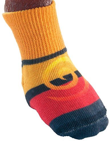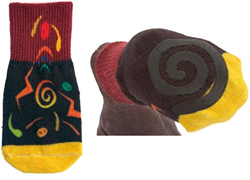 -. Binding : Misc. -. Brand : Ultra Paws -. Color : SHAZAM -. Feature : New Improved - Generous silicone swirl grip on the sole for better traction / Set of 4 / Wide, double-layer cuff holds Sock in place / No interior threads to catch on the dog's claws / Use indoors for traction on slippery surfaces. Socks may be used inside of dog boots for increased warmth -. Label : Ultra Paws -. Manufacturer : Ultra Paws -. PackageQuantity : 4 -. ProductGroup : Pet Products -. ProductTypeName : PET_SUPPLIES -. Publisher : Ultra Paws -. Studio : Ultra Paws -. Title : TRACTION DOG SOCKS - ULTRA PAWS - DESIGNER SET OF FOUR - ALL COLORS AND SIZES