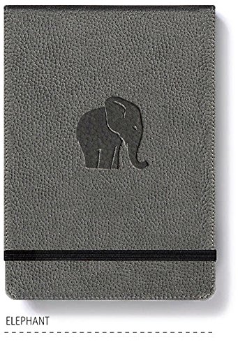 Dingbats Wildlife Pocket A6+ (6.1 x 4.1) Reporter Notebook - PU Leather, Micro-Perforated 100gsm Cream Pages, Inner Pocket, Elastic Closure (Lined, Gray Elephant)