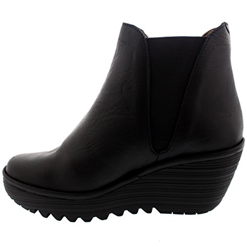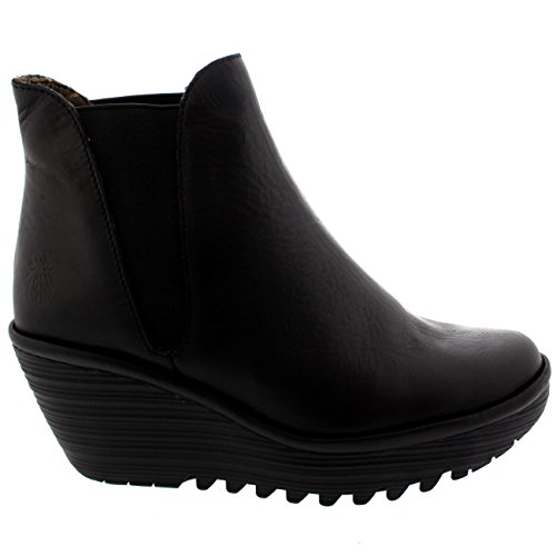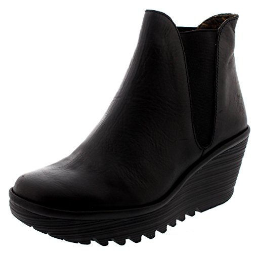 Binding : Apparel Product Description Yoss, a wedge heel ankle boot designed by Fly London. The boot features a full leather upper, tooth style tread, elasticated side panels, contrasting stitching, round toe front and the Fly London Fly logo embossed on the outer side. 0