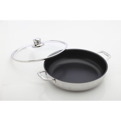 This versatile Prestige Clad 12.5" Chef's Pan allows you to saute vegetables, fry meats, or steam mussels effortlessly. The flat bottom and wide mouth feature a unique design that allows liquid to evaporate more efficiently, cooking your food faster. Constructed with an 18/0 magnetic stainless steel base layer, alternating layers of pure and alloy aluminum as well as a top layer of 18/10 stainless steel reinforced with Swiss Diamond's revolutionary nonstick coating - this pan is top of the line. The high sides allow you to easily stir your delicious meals while the diamond coating allows for a quick and easy clean up.Feature