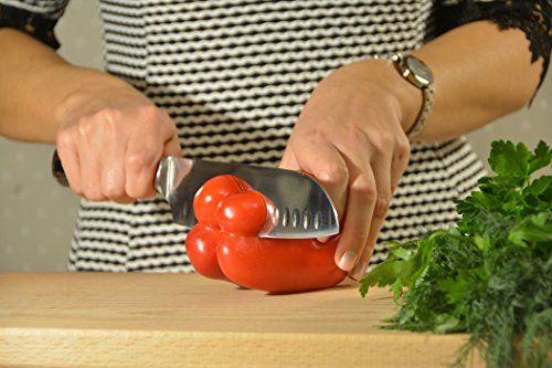 Classic hollow-ground grooves create a non-stick blade for slicing with buttery smoothness! You will feel the difference apparently!