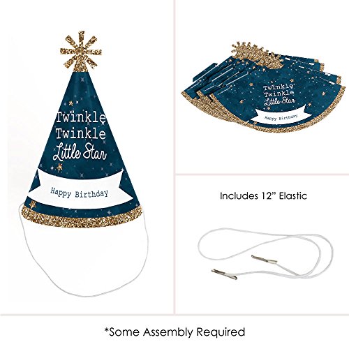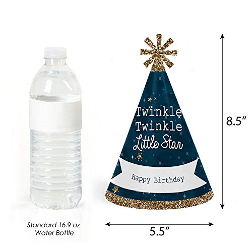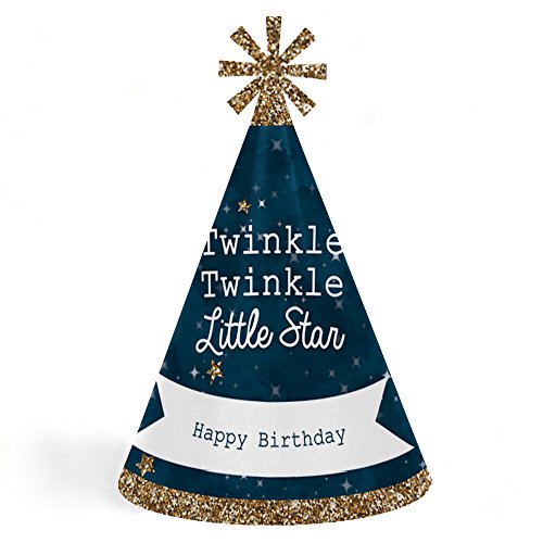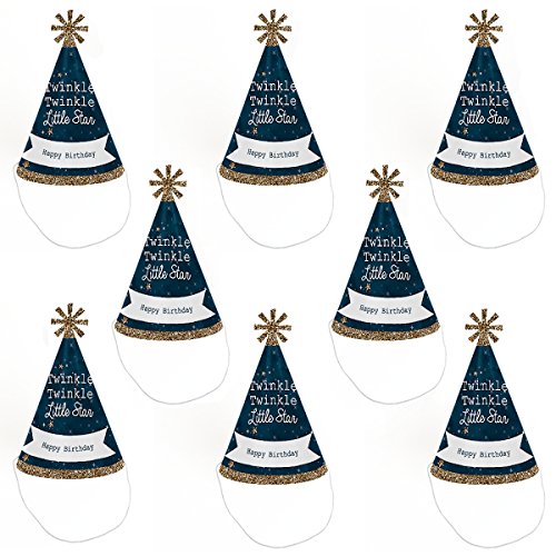 -. Title : Twinkle Twinkle Little Star - Cone Happy Birthday Party Hats for Kids and Adults - Set of 8 (Standard Size)