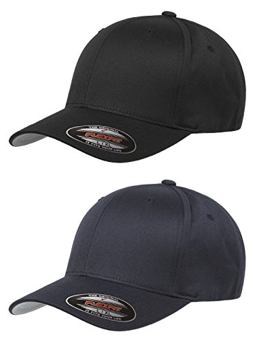 Flexfit Unisex Wooly Combed Twill Cap (6277) 2-Pack (L/XL, Black Dark Navy)