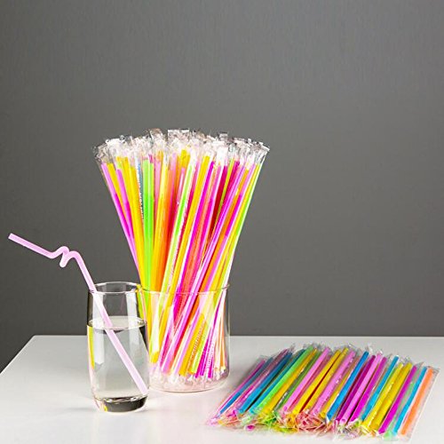 Newcreativetop 10 Inch Disposable Bendable Extra Long Plastic Drinking Straws (200)