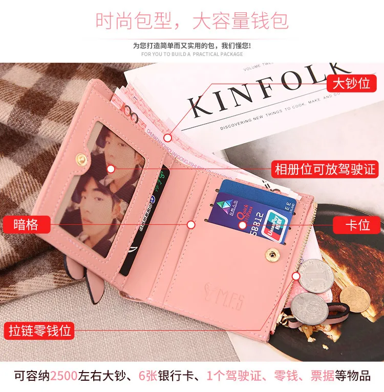 Interior:Zipper Poucht,Coin Pocket,Card Holder,Photo Holder,Note Compartment